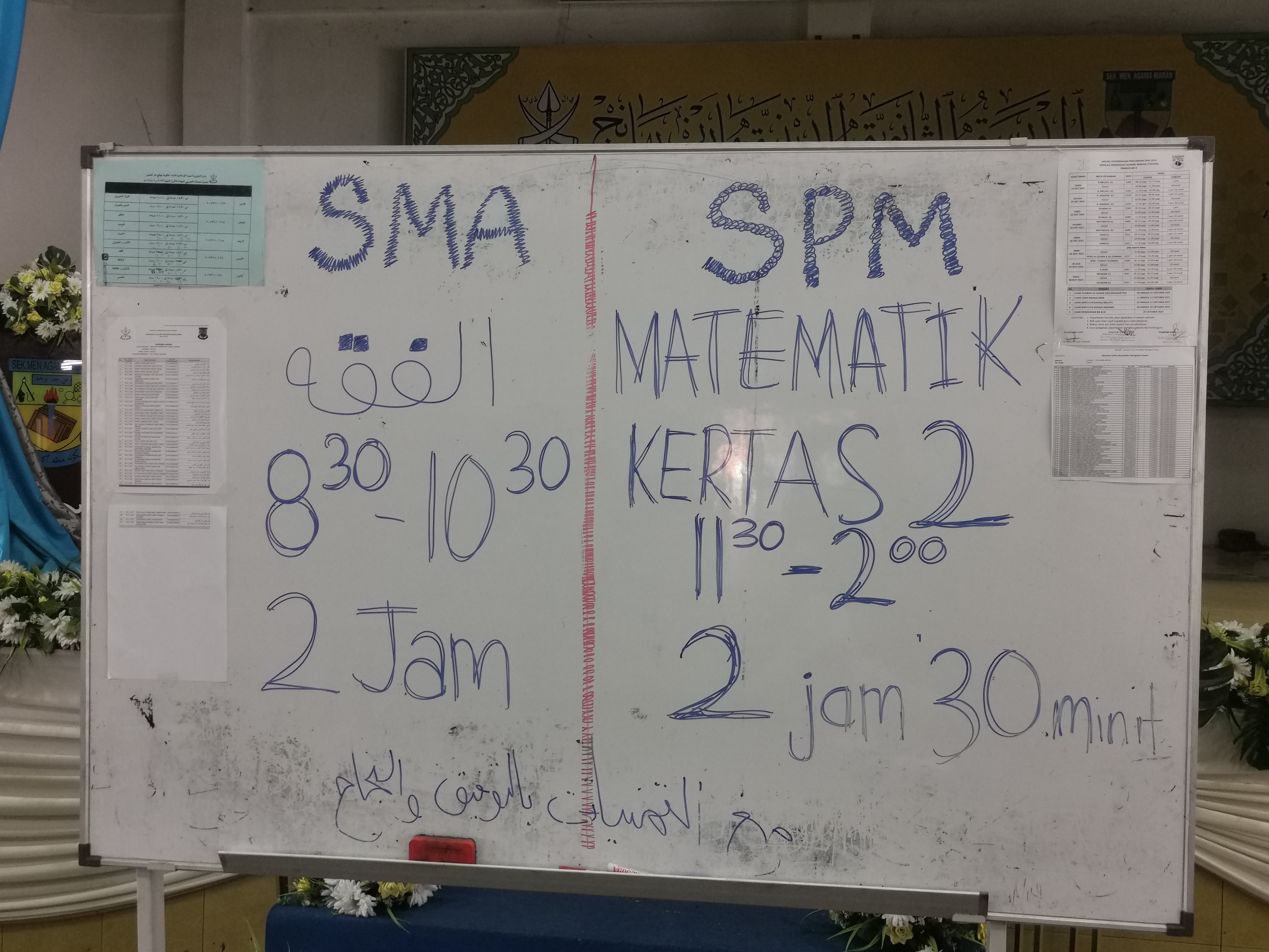 Alhamdulillah. Peperiksaan percubaan SMA dan SPM 2023 telah bermula pada hari ini Isnin 23 Oktober 2023. Sebjek pertama SPM ialah Bahasa Melayu yang bermula pada jam 8.10 pagi, manakala untuk SMA, subjek pertama ialah Al-Quran Tahriri yang bermula pada jam 8.30 pagi. Semoga semua pelajar akan dapat menjawab dengan cemerlang. InsyaALLAH